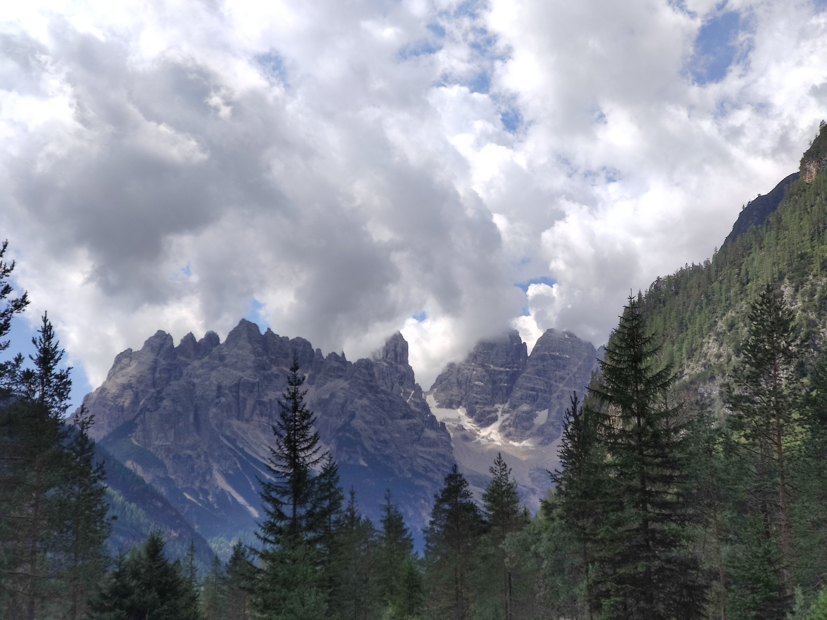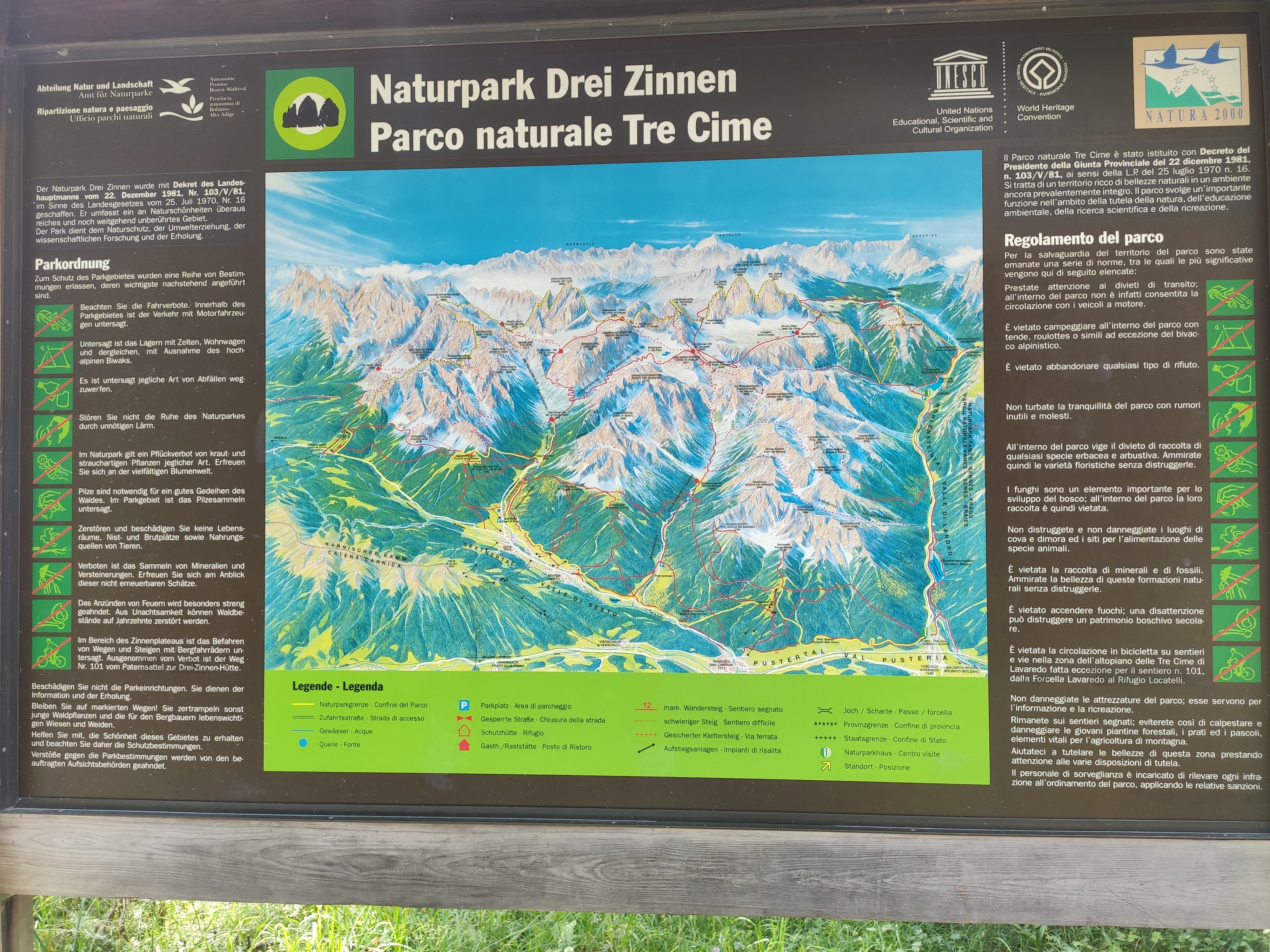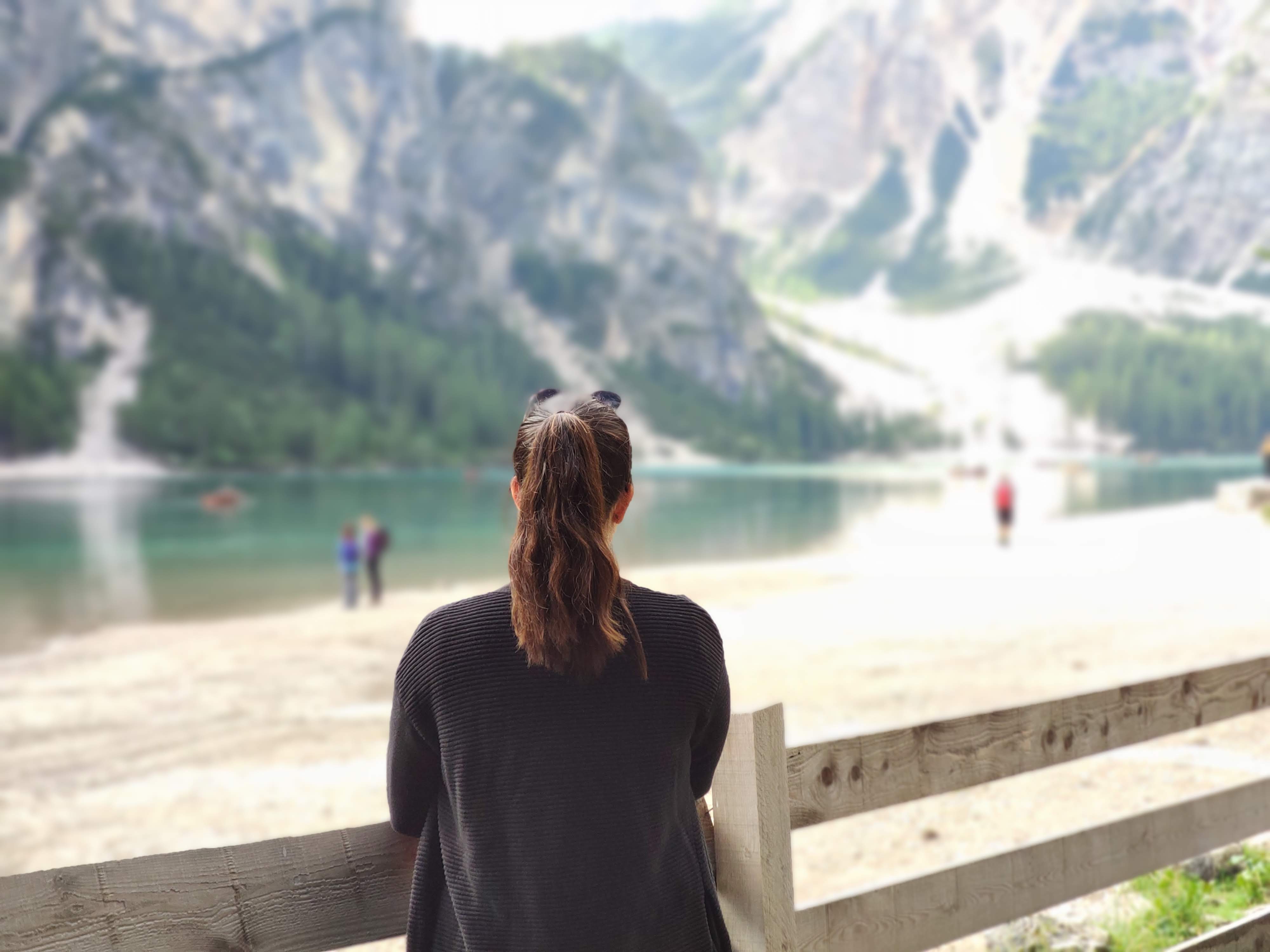 Am Weg zum Pragser Wildsee kann man einen Halt am „Parkplatz Dreizinnenblick“ machen. Wie der Name schon sagt, hat man von hier einen tollen Blick auf die Drei Zinnen, das Wahrzeichen der Südtiroler Dolomiten. Mit unserem Baby in der Trage konnten wir in der Gegend etwas spazieren gehen.