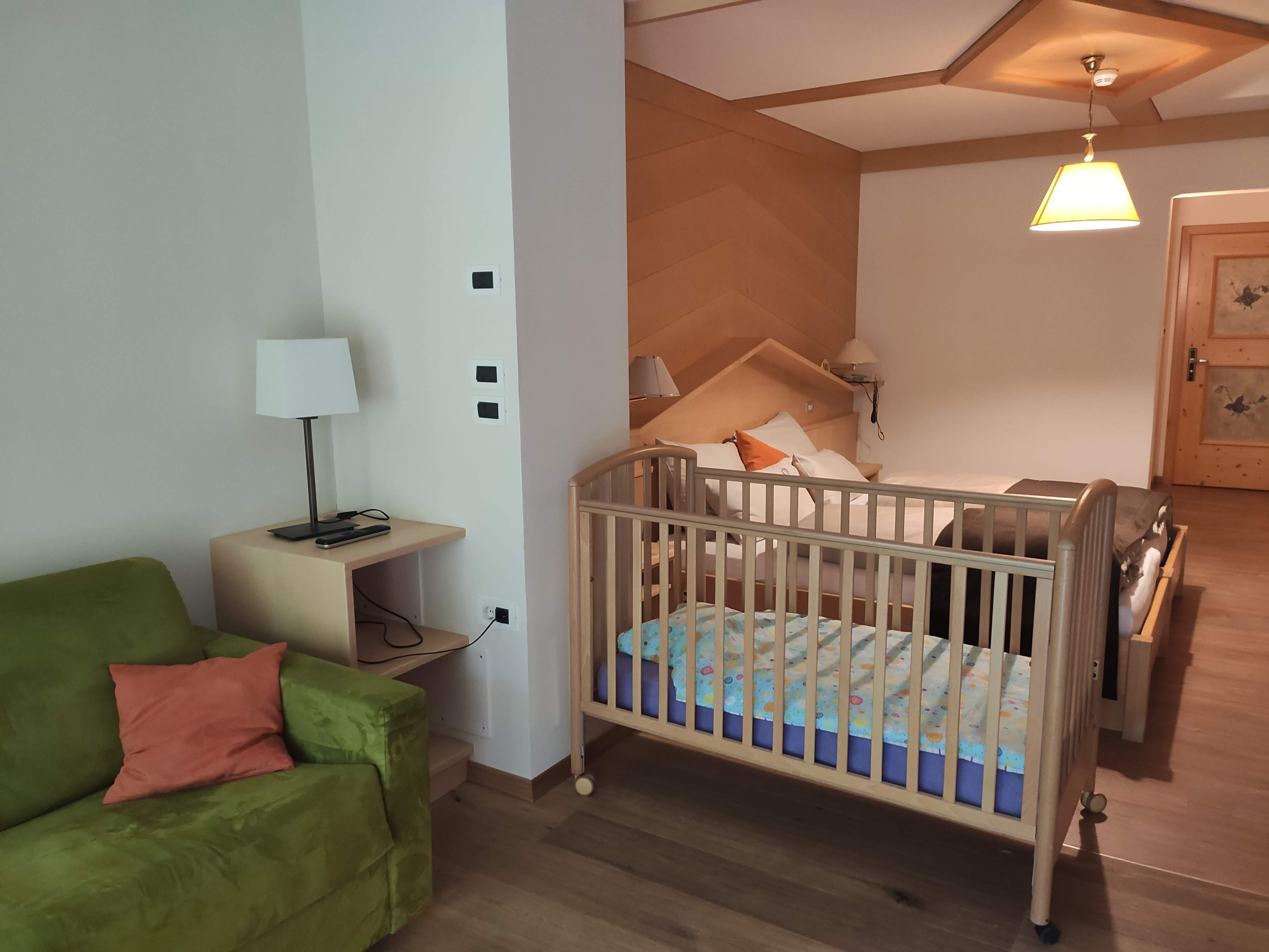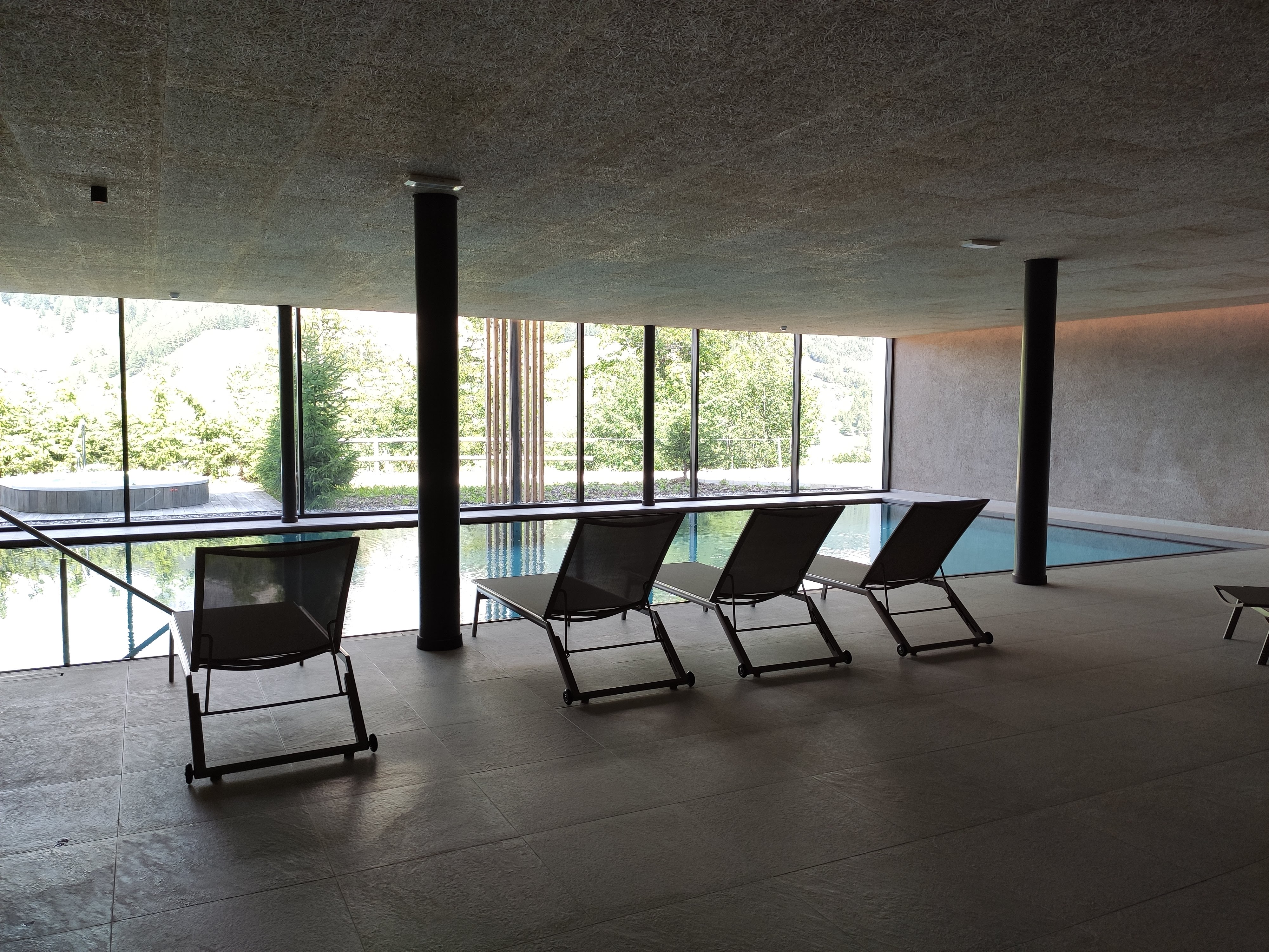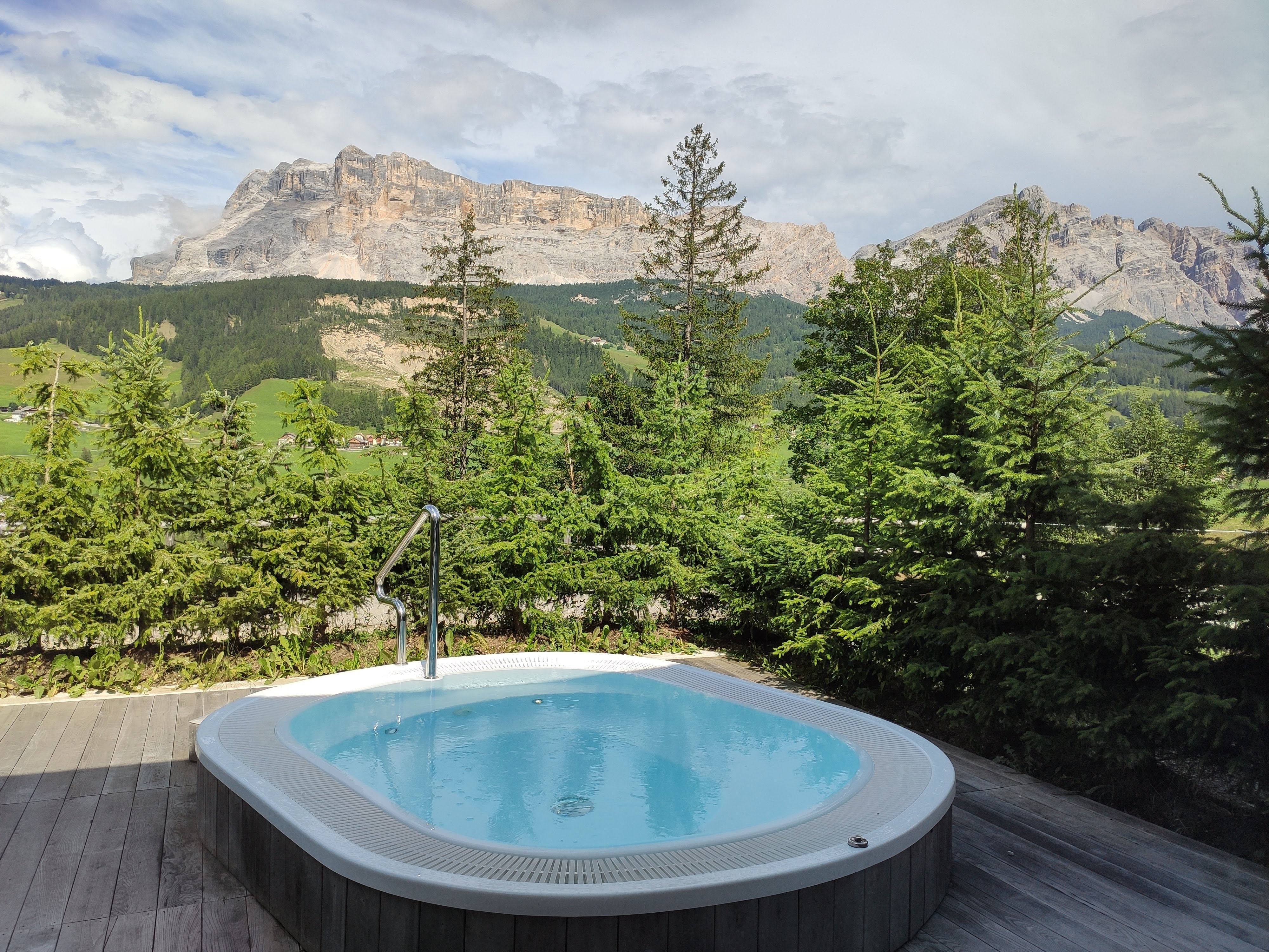 Unsere nächste Unterkunft war das Hotel Ristorante Lech da Sompunt, ein herrliches am Berg gelegenes Hotel, in dem wir ein Familienzimmer gebucht hatten. Vom Wellnessbereich mit Hallenbad, Sauna und Panoramawhirlpool hatten wir einen super Blick auf die Dolomiten.