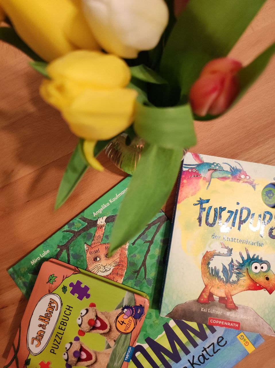 - unsere Lieblingsbücher (Klein B. wird bald 3 Jahr alt): Der Grüffelo, Das Grüffelokind, Die Schnetts und die Schmoos, Komm sagte die Katze, Der kleine Siebenschläfer, Bimbulli, Das große Buch vom Mutigsein, Furzipups der Knatterdrachen, alle möglichen Arten von Wimmelbüchern,…