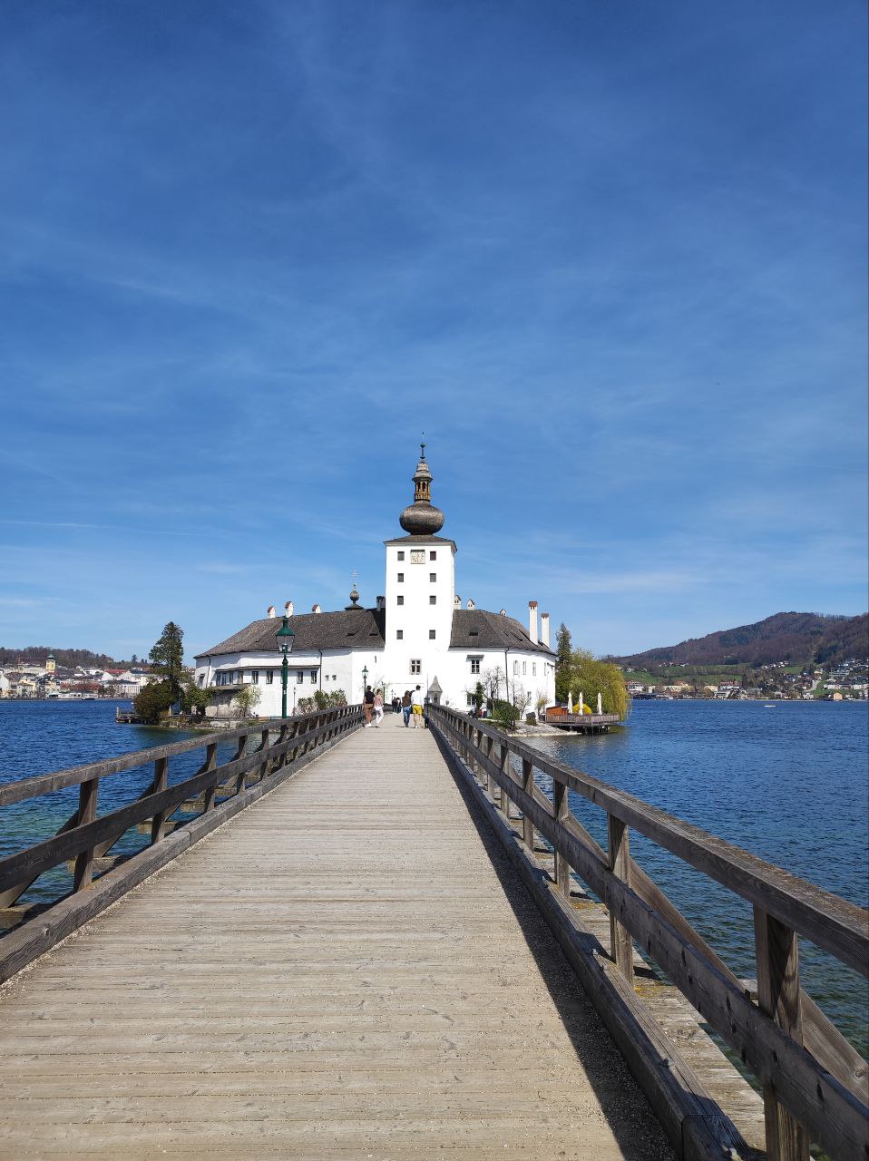 Bevor wir in die Ortschaft fuhren, machten wir einen Abstecher zum Schloss Ort. Die Kulisse der bekannten Serie „Schlosshotel Ort“ ist definitiv ein „must see“ und absolut herrlicher Fotospot – was ob der wunderbaren Aussicht auf die umliegenden Berge und den Traunsee nicht verwunderlich ist.